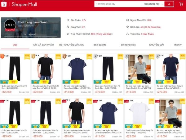 Trang Shopee Mall của thương hiệu Owen (Nguồn: shopee.vn)MUA NGAY