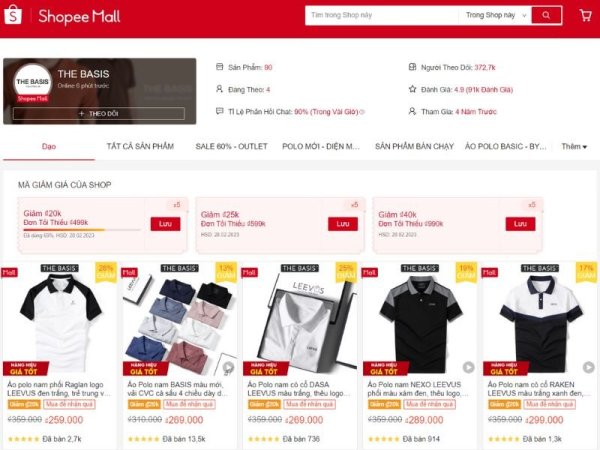 Đúng như tên gọi, the Basis là thương hiệu đồ nam với các sản phẩm đơn giản, thanh lịch mà sang trọng. Tại Shopee Mall, The Basis có lượt đánh giá trung bình khá cao – 4.9 với hơn 395,000 lượt theo dõi. The Basis đặc biệt cung cấp nhiều mẫu polo đa dạng bên cạnh các loại áo thun và quần, chú ý tới chất liệu thoải mái, màu sắc nhã nhặn dễ phối đồ. Bạn có thể yên tâm tận hưởng ưu đãi và chính sách mua hàng rõ ràng dù là mua online.