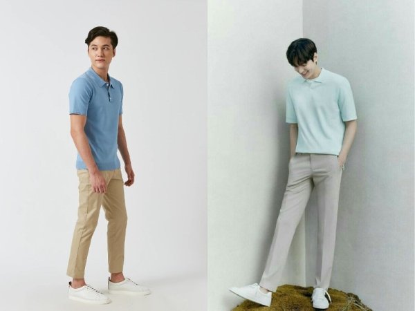 Áo polo nam với quần kaki tôn lên vóc dáng khỏe khoắn (Nguồn: Mudi, Gine Store) MUA NGAY> Xem thêm: 15+ cách phối đồ với quần kaki nam thu hút & trendy trong năm nay