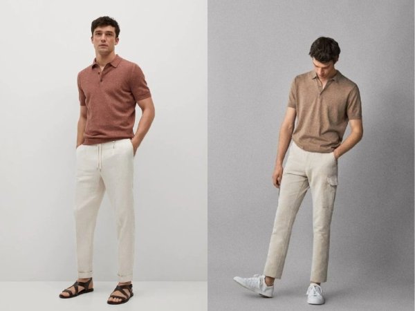 Áo polo với quần linen tạo cảm giác thoải mái (Nguồn: Pinterest) MUA NGAYPhối đồ với áo polo nam cùng quần xếp ly