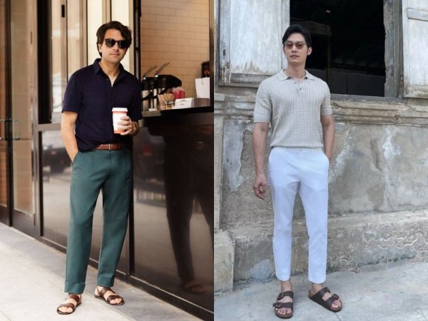 Trang phục thoải mái với áo polo cùng giày sandal (Nguồn: Pinterest) MUA NGAYĐể đồng nhất với phong cách phóng khoáng mà đôi sandal mang lại, bạn nên phối áo polo với những chiếc quần có chất liệu vải rũ, không quá đứng dáng như linen. Ngoài ra, phụ kiện túi hoặc kính mát cũng là sự lựa chọn cực hoàn hảo cho bộ trang phục nghỉ mát này.