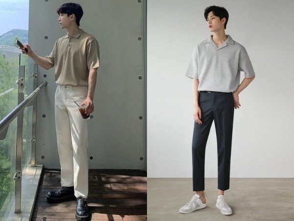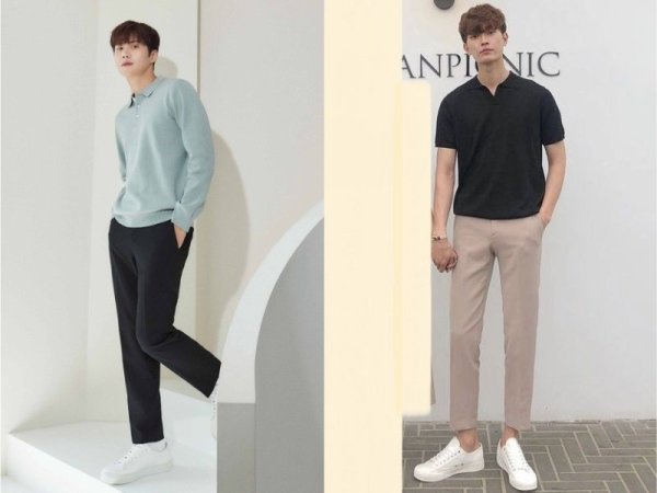 Để đồng nhất với dáng ôm của quần xếp ly, bạn cần phải chọn một chiếc áo polo rộng vừa, tôn đường bờ vai, bắp tay để cân đối tổng thể trang phục. Ngoài ra, giày thể thao là lựa chọn phù hợp nếu muốn hướng bộ trang phục theo phong cách năng động. Trong khi, giày da sẽ là vũ khí giúp bộ đồ thêm lịch lãm hơn.