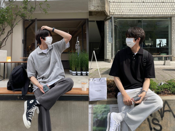 Áo polo cùng quần baggy tạo nên tổng thể năng động (Nguồn: Pinterest) MUA NGAYÁo polo nam cùng quần chinos