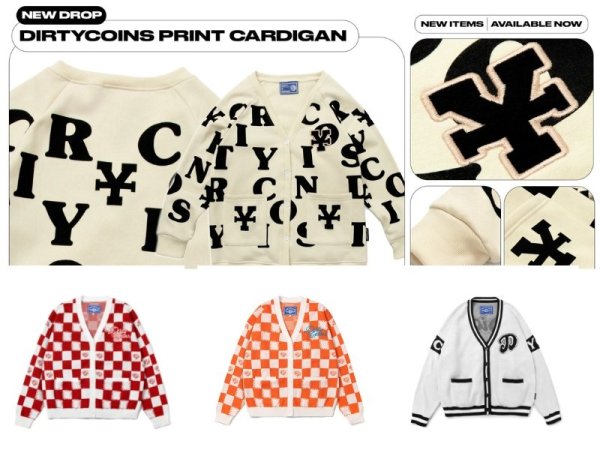 Là một local brand khá nổi tiếng tại Việt Nam với những sản phẩm chăm chút kỹ lưỡng, Cardigan của Dirty Coins là một trong những dòng sản phẩm bán cực kỳ chạy hãng. Dirty Coins mang đến những dòng áo cardigan đa dạng cả về họa tiết, màu sắc, phong cách cùng số lượng sản phẩm so với mặt bằng chung các brand.