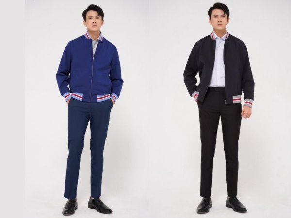 Băn khoăn áo bomber mặc với gì để sở hữu vẻ ngoài trẻ trung và lịch lãm thì bạn phải nhớ ngay đến chiếc quần tây. Dù được cộp mác khô khan và cứng nhắc nhưng khi quần tây phối với áo bomber lại tạo nên một tổng thể khá hài hòa. Bạn có mặc áo thun vừa vặn với cơ thể, quần tây màu đậm và khoác bomber là đã có thể tạo nên một bộ trang phục chỉnh tề nơi công sở.