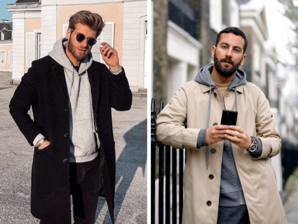 Gợi ý thử 9 trong danh sách phối đồ với áo măng tô nam chính là “mix & match” cùng áo hoodie. Đây là một loại áo có mũ, thường được thiết kế form rộng và được các chàng trai cá tính yêu thích. Mặc áo hoodie như một chiếc áo thun bên trong, khoác ngoài là áo măng tô dáng dài, kết hợp cùng giày sneaker sẽ cực ấn tượng. Bộ đôi áo măng tô đen và áo hoodie xám phù hợp trong nhiều hoàn cảnh, bạn hãy tham khảo nhé.
