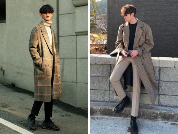 Làm mới bản thân với áo măng tô kết hợp đồ thể thao (Nguồn: Pinterest) Mua NgayPhối áo măng tô caro cùng giày oxford hoặc thể thao đen