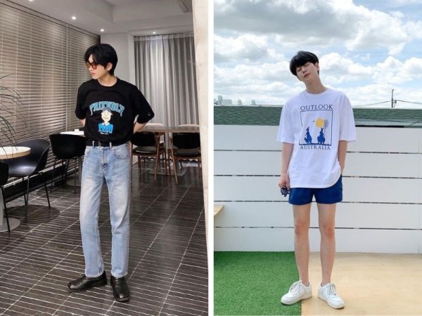 Áo thun phối áo thun nghe có vẻ xa lạ nhưng outfit này được các chàng trai xứ sở Kim Chi thường xuyên lăng xê. Lưu ý nên chọn áo có hoạ tiết đơn giản để tránh rối mắt cho người đối diện nhé. Một đôi sneaker sẽ giúp bản phối này hoàn chỉnh hơn.