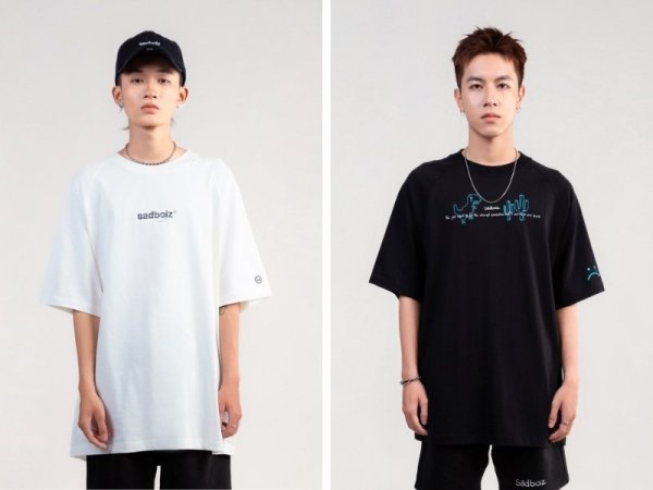 Gợi ý phối đồ với áo thun nam tiếp theo chính là bản phối với áo thun sadboiz. Đây là những chiếc áo lấy cảm hứng từ nỗi buồn. Item này được các chàng trai cá tính ưa thích trong thời gian gần đây. Với hoạ tiết đặc biệt, phom áo rộng, bạn có thể kết hợp cùng quần short, quần jean hoặc quần thể thao để tăng thêm phần cá tính. Outfit này phù hợp để đi học, đi chơi hoặc dạo phố cùng bạn bè.