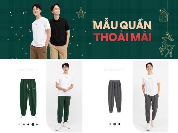 Pattern là một trong số ít thương hiệu thời trang nam sở hữu những mẫu quần jogger với nhiều kiểu dáng và màu sắc khác nhau ngoài hai màu đen, xám cơ bản. Bạn có thể tìm thấy thêm các màu xanh dương, xanh lá hay vàng sáng với chất liệu nhung tăm, kaki và nỉ. Hầu hết các mẫu quần jogger của Pattern đều có form dáng cơ bản với lưng chun, bo chun hoặc rút dây và thêm thắt một số đường chỉ khác màu trên quần để tạo điểm nhấn. Thiết kế này thích hợp cho các bạn nam theo đuổi phong cách đơn giản, trẻ trung và năng động cho những buổi dạo phố hay tập thể thao ngoài trời.