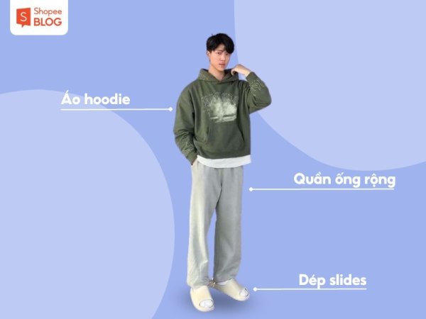 Cách phối áo hoodie với quần ống rộng nam