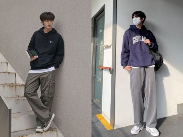 Áo hoodie là lựa chọn phù hợp khi phối cùng quần ống rộng vào ngày lạnh (Nguồn: lemenne.kr và tiktok.com)