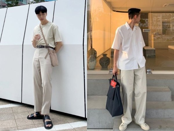 Bạn có thể phối quần kaki ống rộng với áo thun hoặc áo sơ mi màu trơn (Nguồn: bidu.asia và pinterest.com)[url=https://shopee.vn/search?keyword=qu%E1%BA%A7n kaki %E1%BB%91ng r%E1%BB%99ng nam MUA NGAY