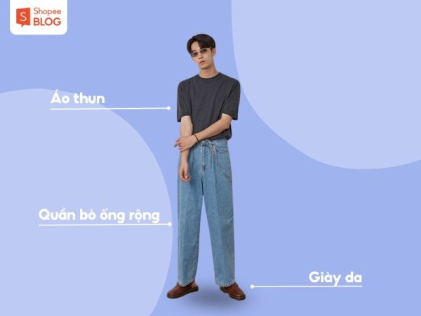Phối đồ với quần bò ống rộng nam