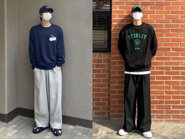 Cách phối quần kaki ống rộng và áo sweater phong cách (Nguồn: Shopee Blog)Áo sweater thích hợp khi phối cùng quần ống rộng suông nam (Nguồn: pinterest.com)