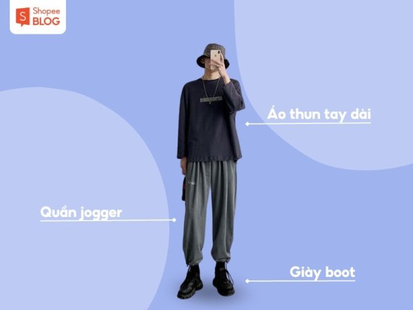 Quần jogger ống rộng phối cùng giày boot sẽ mang lại outfit năng động, cool ngầu (Nguồn: Shopee Blog)