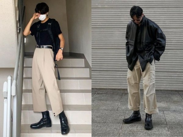 Giày boot là item phù hợp để kết hợp cùng quần ống rộng (Nguồn: tete)[url=https://shopee.vn/search?keyword=gi%C3%A0y boot nam MUA NGAY