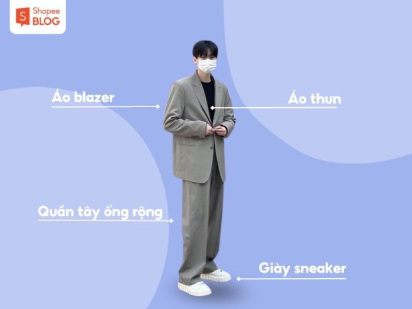 Set đồ thanh lịch khi phối quần tây ống rộng và áo blazer (Nguồn: Shopee Blog)Bạn có thể chọn áo blazer cùng màu với quần để tổng thể hài hòa hơn (Nguồn: tete)