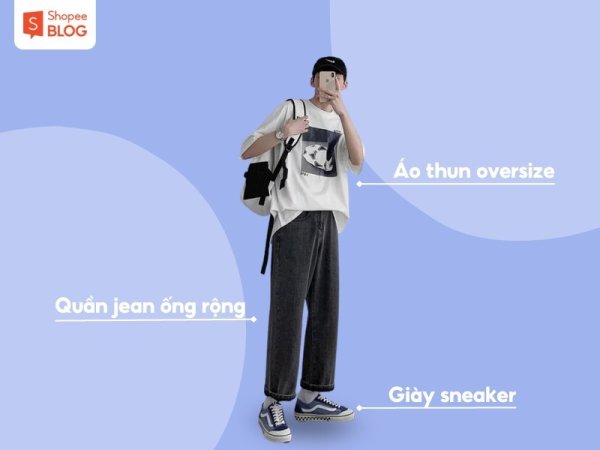 Áo thun oversize và quần jeans ống rộng là sự kết hợp lý tưởng cho các bạn nam, đặc biệt là những bạn nam dáng gầy. Outfit này sẽ giúp bạn trông đầy đặn hơn và che đi các khuyết điểm của cơ thể. Bạn có thể chọn áo thun oversize họa tiết chữ cùng gam màu trẻ trung, hiện đại phối cùng quần ống jean ống rộng màu tối hoặc ngược lại.