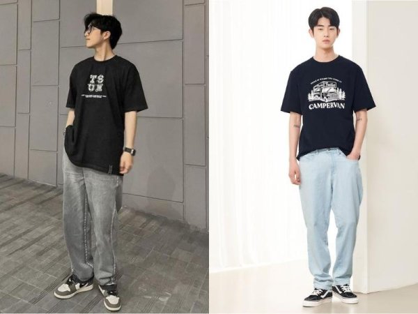 Áo thun là item thích hợp để phối đồ với quần ống rộng nam (Nguồn: musinsa.com và sohu.com)