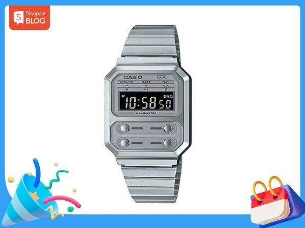 Đồng hồ Casio A100WE-7BDF (Nguồn: Shopee Blog) MUA NGAY> Xem thêm: Top 15+ cách phối đồ nam mùa hè vừa thoải mái vừa năng động