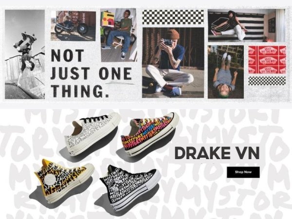 Bên cạnh các sản phẩm kinh điển như giày Converse Chuck 1970s, Vans Old Skool, Drake VN còn thường xuyên cập nhật các mẫu giày mới đang hot trên thị trường như Converse Run Star Hike, Converse CPX Utility,… Những mẫu giày này đều rất năng động nên phù hợp để phối đồ theo phong cách streetstyle hoặc phong cách đơn giản hàng ngày với áo thun, quần ống suông, nón bucket,…
