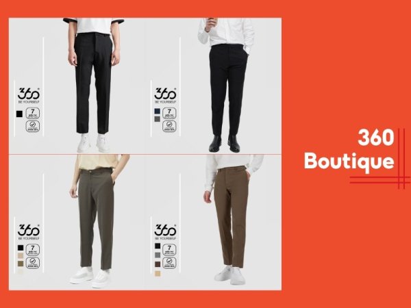 Ra đời vào năm 2014, 360 Boutique là một trong những shop quần âu nam uy tín trên Shopee. Với sản phẩm đa dạng từ cạp cao dáng slimfit đến dáng crop, dáng Tapered,… phù hợp với nhiều vóc dáng. Được nhiều khách hàng đánh giá chất vải đẹp, co giãn tốt, tuy nhiên lại hơi mỏng, vì vậy bạn đừng quên đọc kĩ chất liệu trong phần mô tả nhé. Quần tây 360 Boutique có giá từ 380.000đ đến 599.000đ.