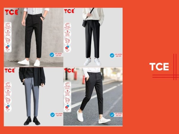 Điều tạo nên sự khác biệt của TCE chính là giá thành cực “hạt dẻ” chỉ từ 75.000đ đến 115.000đ, vì vậy các bạn học sinh, sinh viên đừng nên bỏ qua nhé. Sản phẩm nổi bật nhất tại đây chính là quần tây dáng ôm với chất vải co giãn nhẹ, chống nhăn, chống xù. Hướng đến đến sự tối giản, quần âu TCE có màu sắc cơ bản như trắng, đen, ghi,… phù hợp để đi học hoặc đi làm. Tuy có nhiều khách hàng đánh giá vải hơi mỏng, nhưng nhìn chung form chuẩn và thoáng mát.