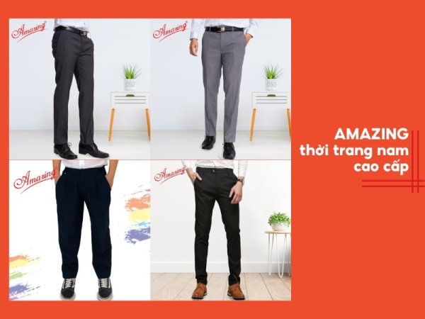Ra đời vào năm 2007, quần tây AMAZING đa dạng form dáng, từ quần ống suông, ôm body đến form rộng. Đặc biệt, ở đây cung cấp quần tây thiết kế truyền thống, không ly phù hợp với người trung niên. Sở hữu bảng màu: xám, cafe sữa, đen,… cũng phù hợp để đi làm hoặc dự sự kiện.