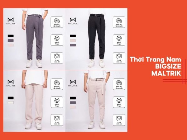 Đúng như tên gọi, Thời Trang Nam BIGSIZE MALTRIK cung cấp những sản phẩm có kích thước lên đến 6XL phù hợp cho các chàng trai có cân nặng dưới 130kg. Quầy tây ở đây có thiết kế cạp chun co giãn, phù hợp với “bụng bia”, hơn hết, chất vải cotton 100% giúp các chàng dễ di chuyển và vận động. Chỉ từ 270.000đ bạn đã có thể sở hữu một chiếc quần tây tại MALTRIK.