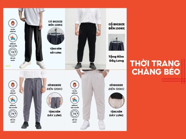 THỜI TRANG CHÀNG BÉO cũng là một trong những cửa hàng bán quần âu nam big size được tin tưởng trong hiện tại. Quần ở đây có kích thước lên đến 7XL (khoảng 130kg). Thiết kế ống suông và cạp chun co dãn giúp các chàng trai bụng bia dễ dàng vận động và che khuyết điểm cực kỳ tốt.