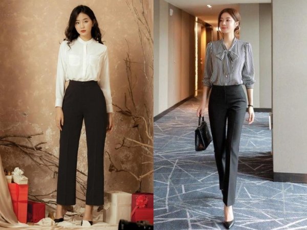 Cách phối đồ phổ biến nhất với áo sơ mi là kết hợp cùng quần tây, bởi đây là trang phục thường ngày của dân văn phòng. Ba màu sắc quần tây phù hợp với hầu hết với các loại áo sơ mi nữ hiện nay là: trắng, đen, be. Áo sơ mi cổ tròn và cổ đức là sự kết hợp tuyệt vời với quần tây để giúp bạn có một vẻ ngoài trang trọng, thanh lịch.