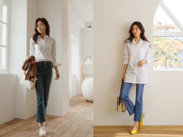 Quần jean luôn là loại trang phục quốc dân, phù hợp với nhiều loại quần áo khác nhau. Áo sơ mi cũng không phải ngoại lệ. Mấu chốt để có được cách mặc áo sơ mi đẹp với quần jean là chọn được dáng quần và màu sắc quần phù hợp. Bạn có thể tham khảo style quần jean áo sơ mi trắng nữ, áo sơ mi xanh dương hoặc xanh lá nhạt.