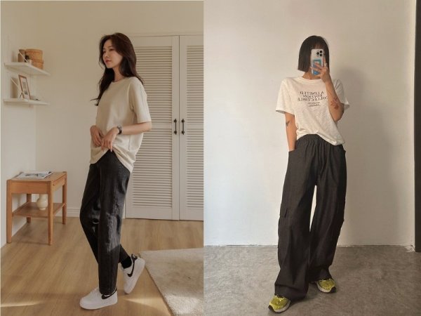 Phối áo thun màu be cùng quần xám đen đậm là một gợi ý hay được nhiều bạn trẻ áp dụng. Về phần phụ kiện, bạn nên chọn phụ kiện có màu trung tính như be, nâu, xám, trắng, đen cho tổng thể outfit hài hòa hơn.