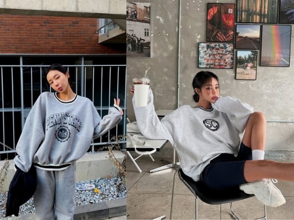 Ở trang phục này, bạn có thể phối áo sweater xám cùng quần jogger nỉ hoặc quần biker. Quần nên có màu xám trùng với áo hoặc màu đen. Vì đây là outfit đậm chất thể thao nên đừng quên kết hợp với đôi sneaker yêu thích của bạn nhé.