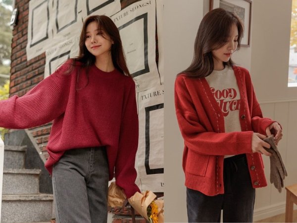Khi mặc áo len đỏ, bạn có thể phối cùng các tông màu như đen, trắng hoặc xám. Đặc biệt, quần jeans màu xám đen và áo len đỏ là “đôi bạn ăn ý” mà bạn nhất định phải thử một lần.