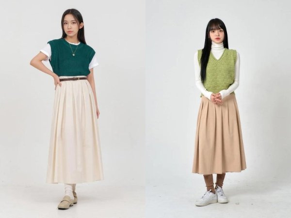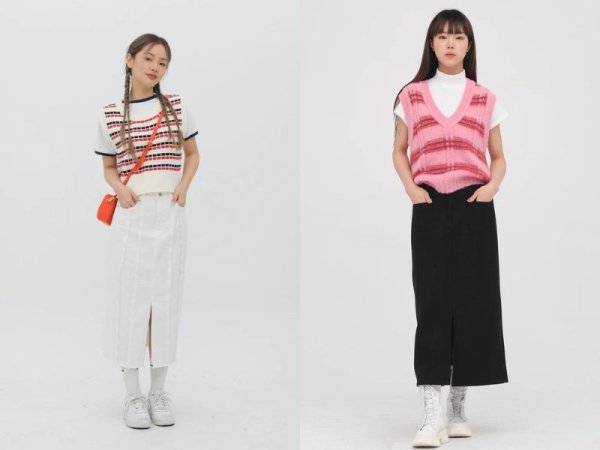 Chân váy suông dài phối cùng gile là trang phục được nhiều bạn trẻ yêu thích (Nguồn: Lewkin) MUA NGAYBên cạnh đó, một chiếc áo len cổ cao cho mùa đông hoặc một chiếc áo thun dáng ôm vừa người là sự lựa chọn phù hợp khi mix áo gile len váy. Bạn có thể lựa chọn một đôi giày sneaker dáng cơ bản hoặc một đôi boot cổ cao màu trắng cho trang phục cá tính, thêm điểm nhấn.