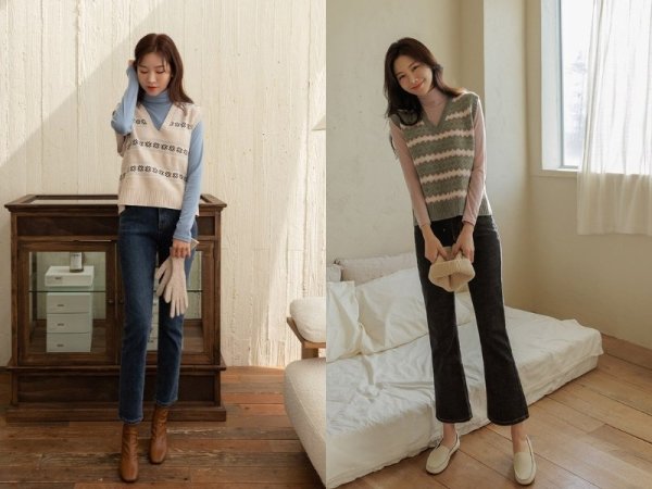 Áo len cổ lọ phối cùng gile cho bạn trang phục tôn tỉ lệ cơ thể tốt (Nguồn: KoodinVg) MUA NGAYCách phối áo gile cho người mập với quần jean
