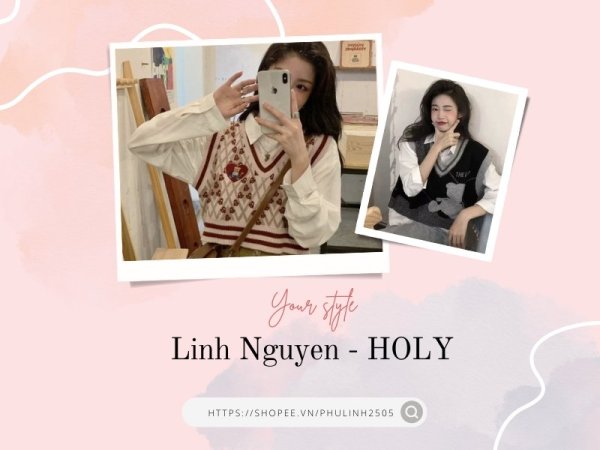 Cũng là một cửa hàng chuyên order các sản phẩm thời trang từ Quảng Châu, Linh Nguyen – HOLY có đa dạng những mẫu mã gile từ đơn giản đến cách điệu như kẻ caro, vằn. Giá các sản phẩm cardigan của shop chỉ dao động từ 50.000 – 219.000 VNĐ. Chất liệu mà các sản phẩm gile của shop sử dụng là chất len với độ dày vừa phải, đảm bảo cho nhu cầu sử dụng hằng ngày nhưng không hề nóng bức.