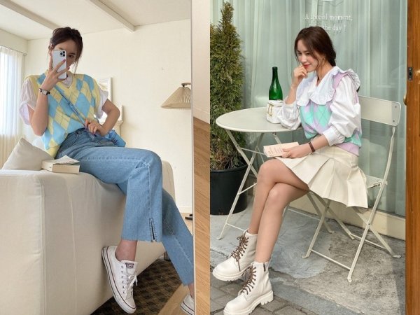 Áo gile họa tiết quả trám giúp bạn có bộ trang phục đậm chất Hàn Quốc (Nguồn: Kooding) MUA NGAYBạn có thể lựa chọn phối quần jean xanh với áo gile có cùng tông màu. Còn nếu như chiếc áo gile của bạn đã khá nổi bật thì hãy đồng nhất màu sắc áo bên trong cùng váy để tổng thể trang phục thêm phần hài hòa. Sneaker hoặc giày boot trắng là những cách phối bổ sung sự trẻ trung, tinh nghịch cho trang phục.