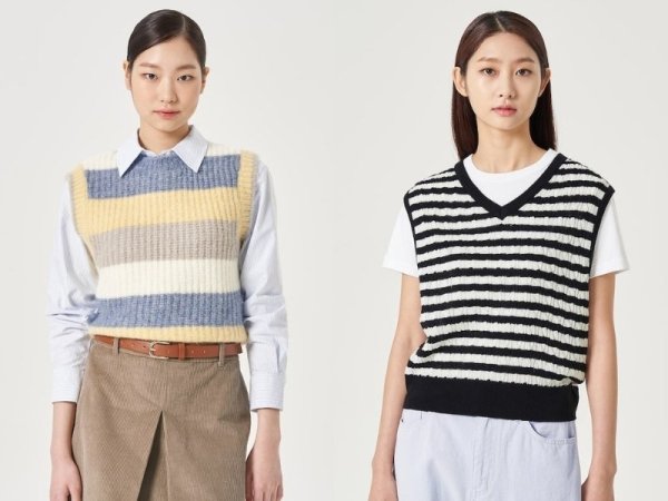 Áo gile kẻ sọc ngang phù hợp nhất với những bạn có thân hình gầy (Nguồn: Kooding) MUA NGAYCách phối đồ với áo gile cổ tim