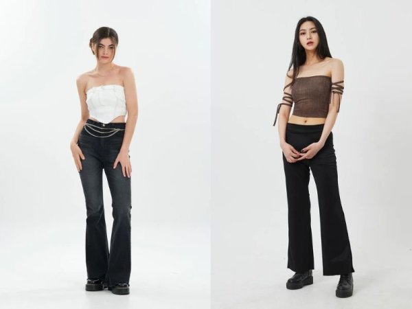 - Chọn quần đúng kích cỡ: Quần ống loe giúp tôn dáng cho phần thân dưới và hack chiều cao khá tốt. Vì vậy, chọn quần vừa vặn với cơ thể sẽ khiến dáng người mặc hài hòa hơn.