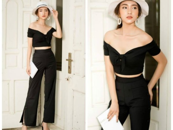 Áo trễ vai là item giúp khoe bờ vai hờ hững với phần xương quai xanh quyến rũ. Vì vậy, nếu chưa biết quần ống loe màu đen mặc với áo gì phù hợp thì bạn có thể nghĩ ngay đến thiết kế này. Ở cách phối này, bạn nên lựa chọn những chiếc quần có độ dài đến mắt cá chân để kết hợp với áo trễ vai dáng ngắn giúp tôn được chiều cao đáng kể. Bạn có thể kết hợp cùng hoa tai, vòng cổ hoặc túi xách để đi dạo cùng bạn bè.