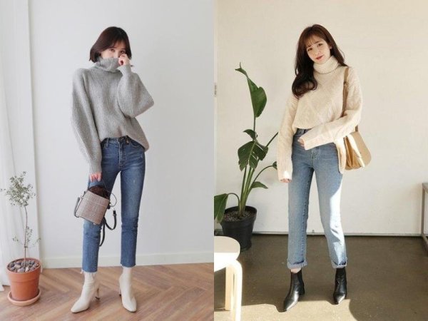 Quần jeans và áo len luôn là 2 item thích hợp để phối đồ nữ mùa đông. Năng động, trẻ trung là những gì kiểu phối này mang đến cho các bạn nữ. Bạn có thể chọn các loại áo len có kiểu dáng khác nhau để phối cùng quần jeans. Chẳng hạn như phối áo len cao cổ cùng quần jeans ống suông hay kết hợp áo len croptop cùng quần jeans cạp cao.