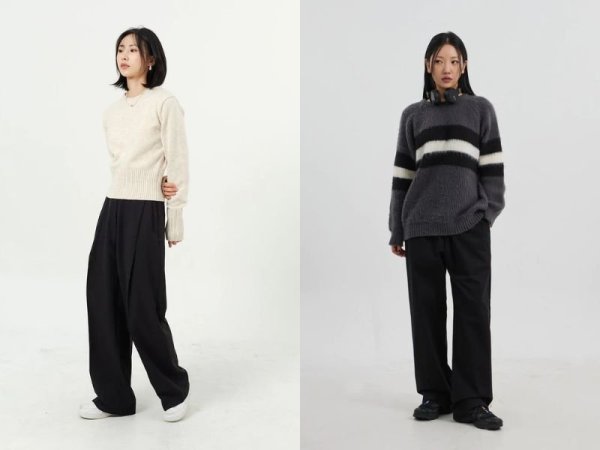 Áo len là item thời trang quen thuộc cho những ngày lạnh, phù hợp phối đồ với quần ống rộng mùa đông. Lưu ý là đối với áo len có dáng rộng và thùng thình thì bạn nên lựa chọn quần có độ dài và độ rộng vừa phải để tránh bị “nuốt chửng” trong set đồ. Cách phối này khi đi kèm cùng cặp, túi xách, khăn choàng cổ sẽ rất hợp nếu bạn mặc đi học, đi làm hay dạo phố vào mùa lạnh.