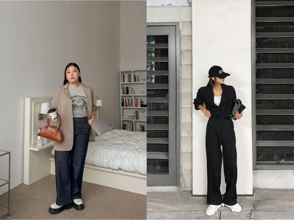 Phối blazer với quần ống rộng sẽ phù hợp với những bạn làm việc trong môi trường năng động mà vẫn đòi hỏi sự gọn gàng, thanh lịch. Phương án an toàn nhất là lựa một chiếc quần có độ rộng vừa phải, sau đó đi kèm áo thun hoặc sơ mi đơn giản ở bên trong và khoác ngoài áo blazer. Bạn cũng có thể tận dụng cách mix&match này làm cách phối đồ với quần ống rộng cho người béo nữ tạo nên một phong cách hoàn toàn mới và khác biệt. Với cách phối này bạn có thể kết hợp cùng túi xách đeo chéo, túi xách cỡ lớn hoặc kính mắt nhẹ nhàng để đi học, đi làm.