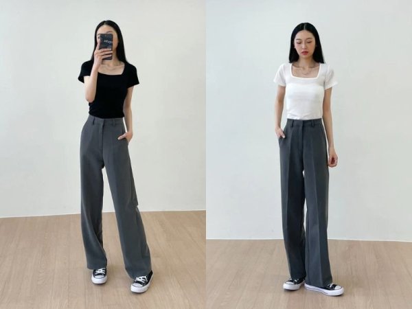 Phối đồ với quần vải ống rộng nữ và áo thun cổ vuông
