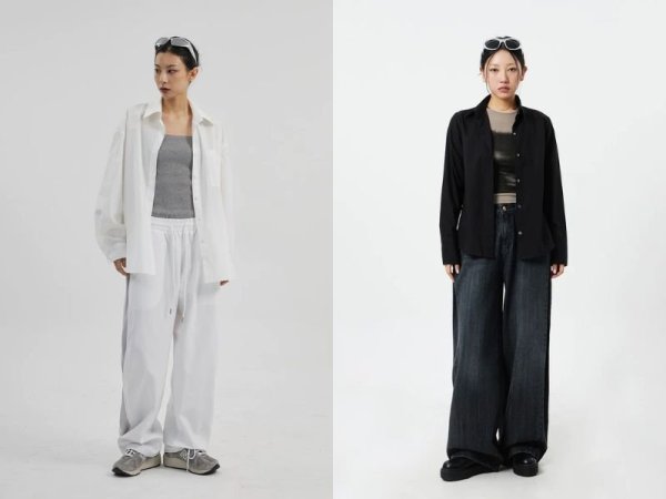 Bên cạnh các cách phối trên, bạn có thể kết hợp luôn áo sơ mi và áo thun trong một set trang phục phối đồ với quần ống rộng nữ. Bạn có thể chọn quần chất vải nỉ hoặc jean, thay áo thun trơn màu thành áo có họa tiết kèm sơ mi khoác đơn giản. Như vậy, tổng thể trang phục sẽ trông bớt nhàm chán hơn. Đừng quên sử dụng thêm phụ kiện như mắt kính, đồng hồ, dây chuyền để tạo điểm nhấn cho outfit.