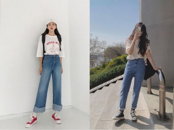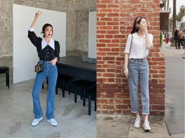 Áo sơ mi và quần jeans là set đồ cơ bản nhất của các cô gái. Bạn có thể tận dụng set đồ này làm cách phối đồ cho người gầy và lùn nữ để có thể linh hoạt di chuyển đến chỗ làm hoặc chỗ học một cách thoải mái. Với quần jean, bạn nên chọn mẫu quần ống loe hoặc dáng baggy để vẻ ngoài thêm đầy đặn, tăng chiều sâu cho thân trên từ cổ áo nhưng lại hack chân với kiểu mặc sơ vin. Điệu đà hơn, bạn dùng thêm túi xách đeo chéo hay phụ kiện tóc như kẹp, băng đô để outfit có phần nhẹ nhàng.
