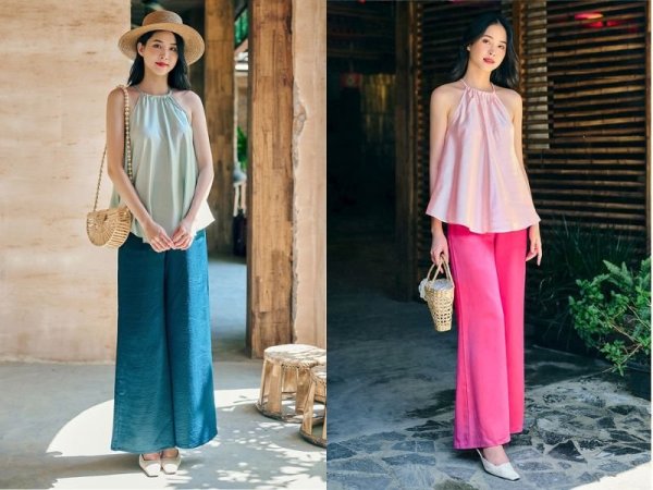 Cách phối đồ với quần ống rộng cho người gầy cùng áo yếm là ý tưởng mới cho các cô nàng muốn tôn được nét đẹp trên cơ thể mà không quá hở. Áo yếm kết hợp với quần ống rộng tạo nên tổng thể hài hòa, giúp bạn trông cao ráo và thanh mảnh hơn. Bạn có thể chọn áo cùng màu quần hoặc áo có họa tiết sặc sỡ chất linen hoặc lụa, thoải mái và dễ chịu. Đừng quên sử dụng túi cói hoặc nón rộng vành để tăng sự dịu dàng và nữ tính.